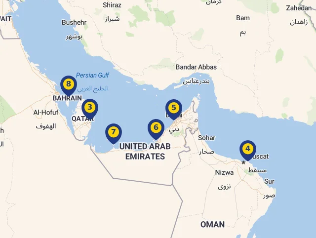 Poznejte místa, kde Vaše loď během plavby zakotví! Každá zastávka je označena číslem, které odpovídá její pozici na mapě, abyste mohli snadno sledovat celou trasu. Stačí kliknout na vybranou destinaci a zjistíte více o každé z nich. Pro lepší přehled si můžete celý program plavby prohlédnout přímo na mapě.