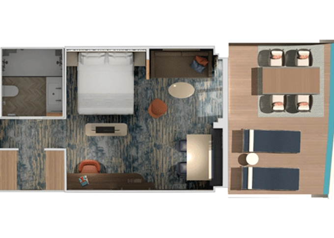 | HE - Kajuta Havana Cabana s patiem 19 m² / vnější patio 7,5 m². Tropický styl, vstup do exkluzivní zóny Havana. | 62 042 Kč 31 021 Kč za osobu | ||