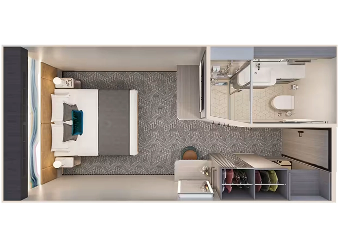SH - Suite s velkým balkónem na zádi 25 m² / balkon 34 m². 9. paluba - vzadu. Max 4 osoby. Výhody Suite. 244 323 Kč 122 161 Kč za osobu